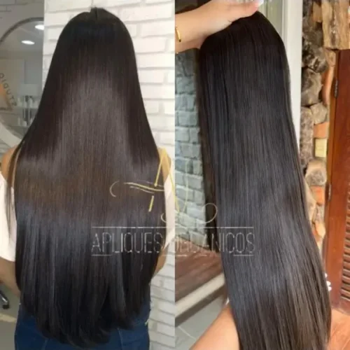Mega Hair Tic-Tac Castanho Escuro Liso Fibra Bio Luxo Prime.