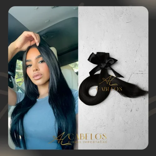 Mega Hair Tic-Tac Preto Liso Fibra Bio Luxo Prime.