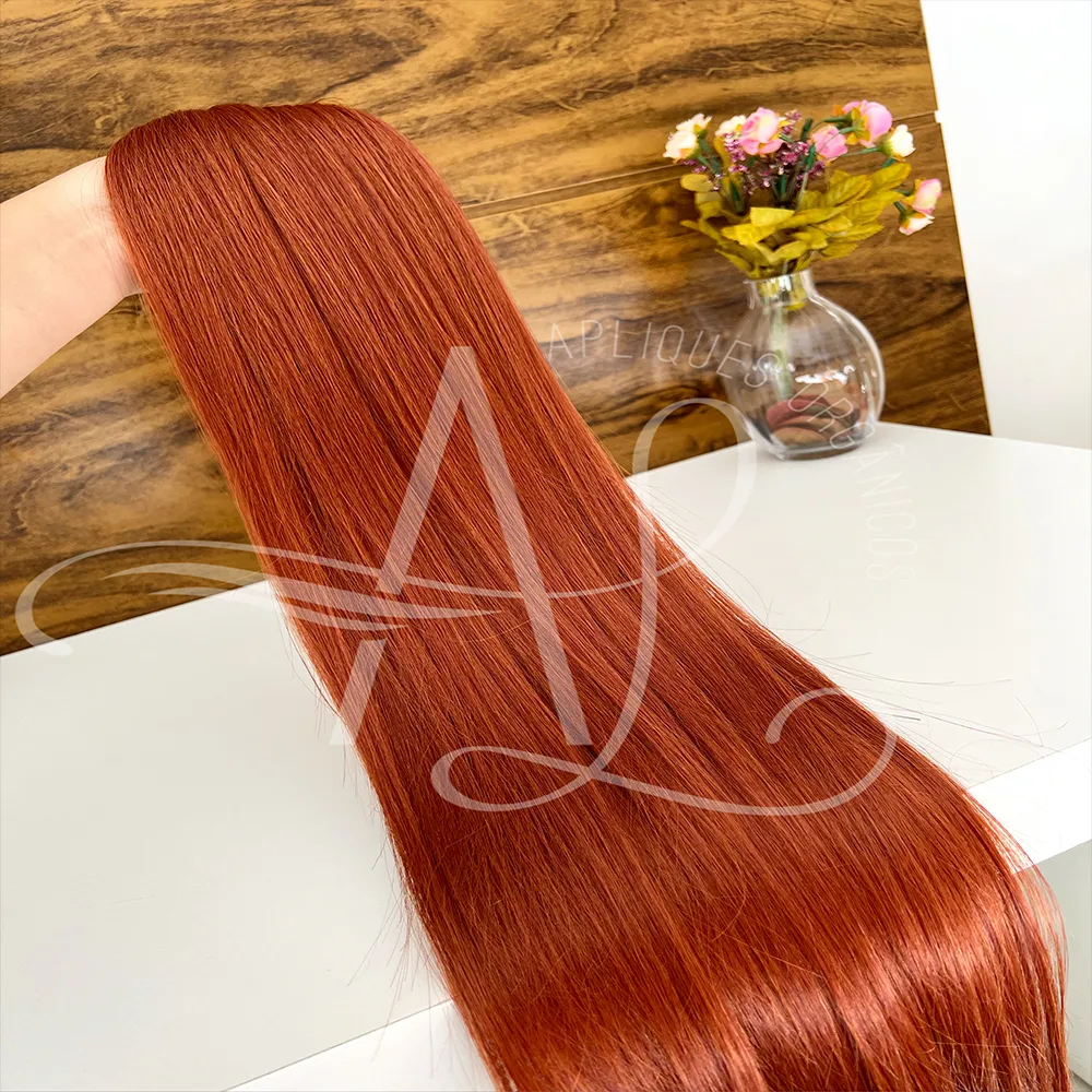 Cabelo Telado/Tecido Ruivo Laranjinha #1 Liso Fibra Russa Ultra Realista 70cm 150g