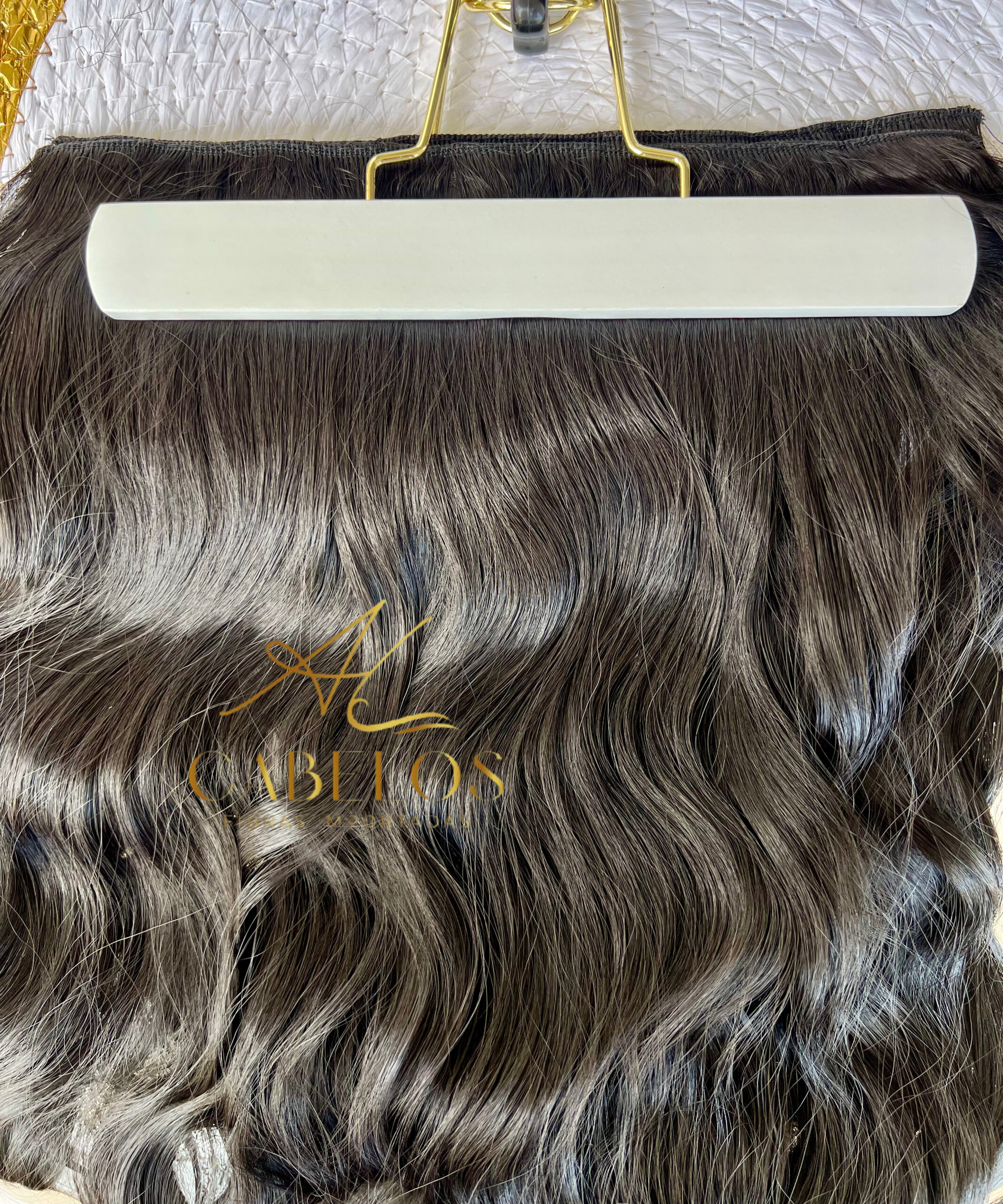 Mega Hair Tic-Tac Castanho Escuro Ondulado Fibra Bio Luxo Prime.