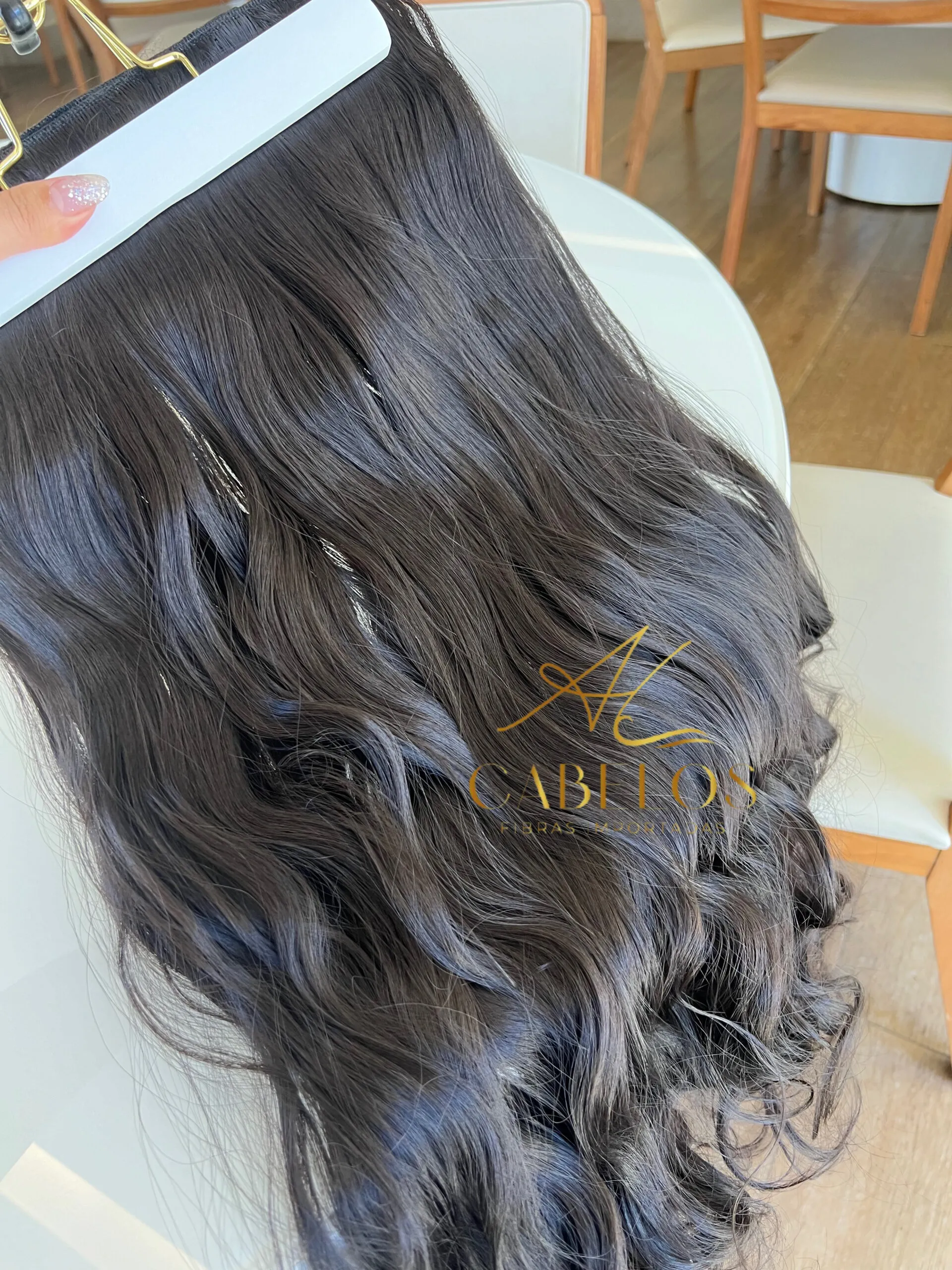 Mega Hair Tic-Tac Castanho Medio Ondulado Fibra Bio Luxo Prime.