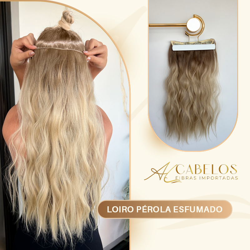 Mega Hair Tic-Tac + Fio Invisible Fibra Russa Suzan 50cm 120g- Loiro Pérola Esfumado