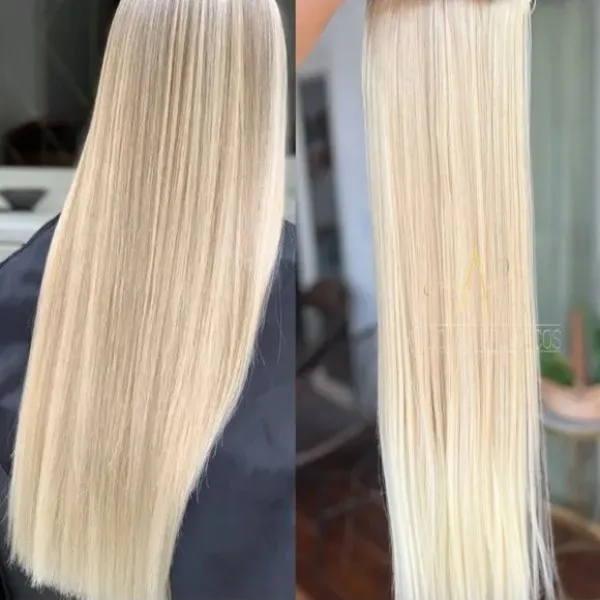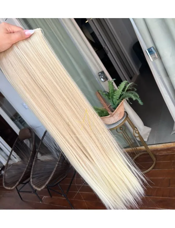 Mega Hair Tic-Tac Loiro Pérola Claro Liso Fibra Bio Luxo Prime.