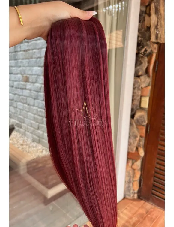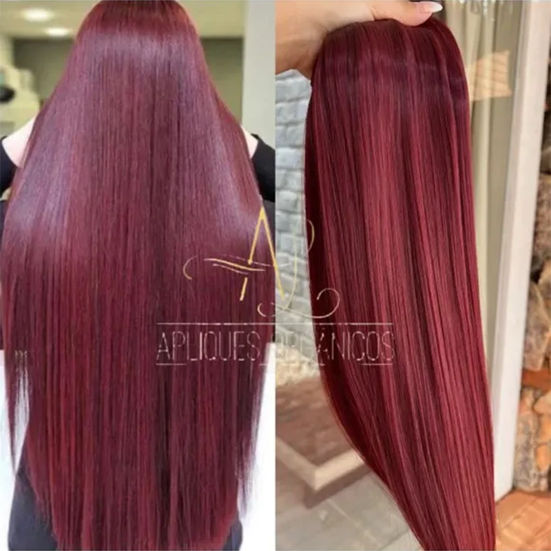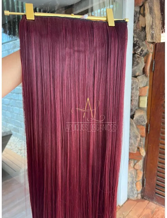 Mega Hair Tic-Tac Vermelho Marsala Liso Fibra Bio Luxo Prime.